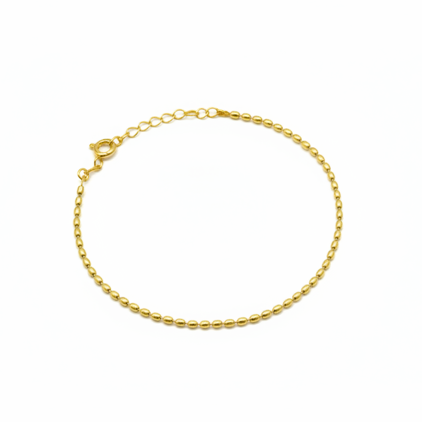 Meet Katy, the perfect addition to your wrist stack. Our gold oval bead bracelet features a row of smooth, polished oval beads that catch the light beautifully. Designed with an adjustable extension chain, it offers a comfortable fit from 17–23cm, making it perfect for layering or wearing alone for a clean, understated look.