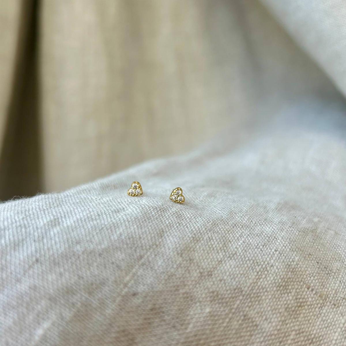 Add a hint of sparkle with our tiny gold crystal heart studs. Made from sterling silver with an 18kt gold vermeil finish, each earring features a delicate heart shape set with clear crystals for a subtle shine.