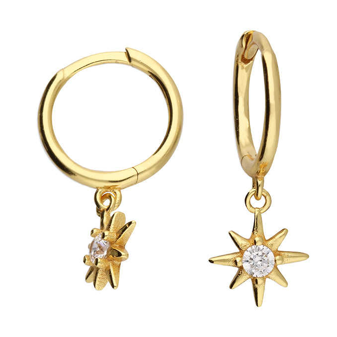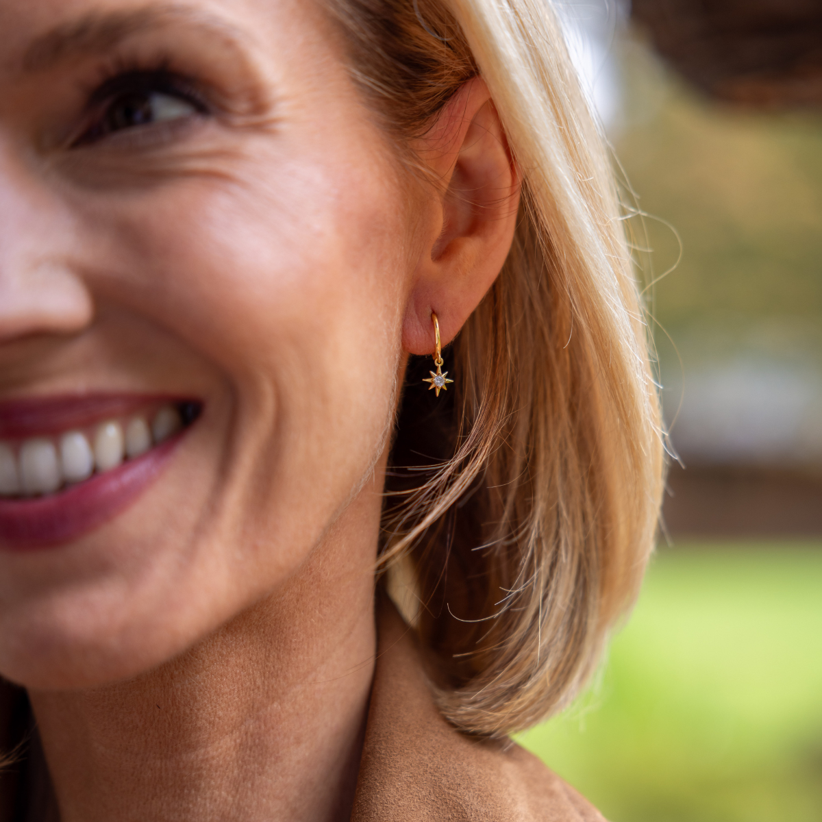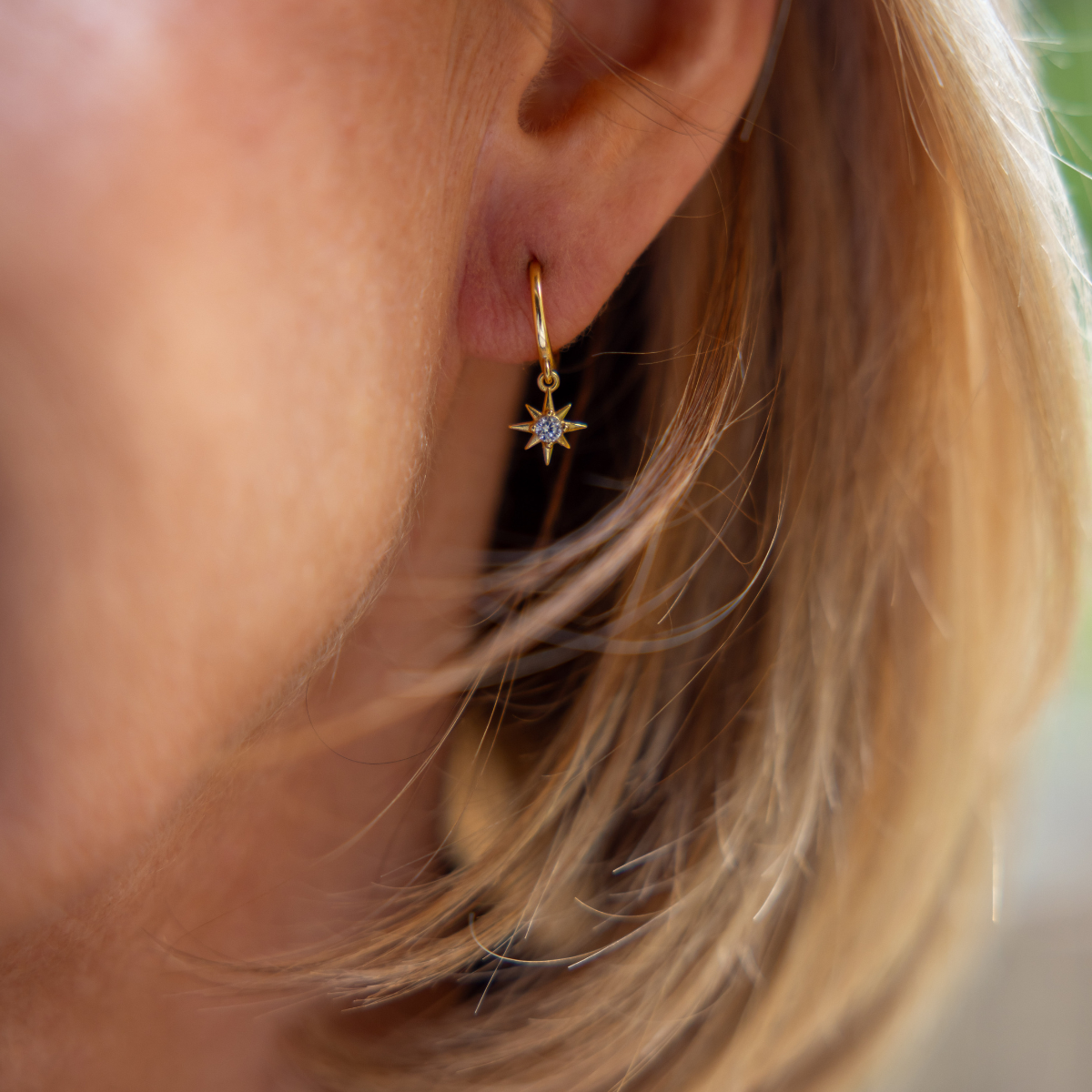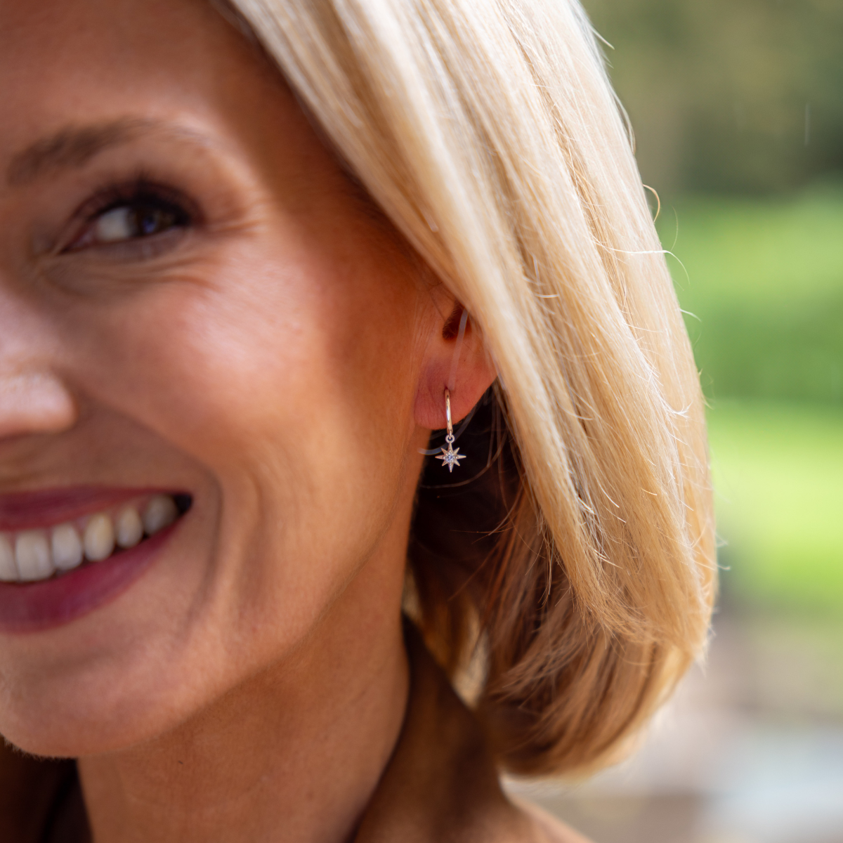 Super cute celestial silver huggie earrings to make ear stacking a breeze! These silver huggie earrings with cubic zirconia star detail are the ideal basis for your stack.