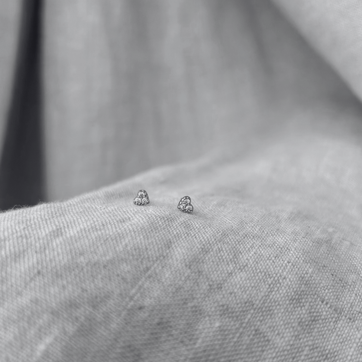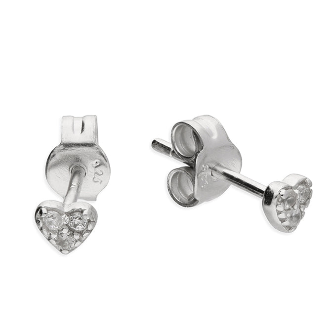Add a hint of sparkle with our tiny silver crystal heart studs. Made from sterling silver, each earring features a delicate heart shape set with clear crystals for a subtle shine.